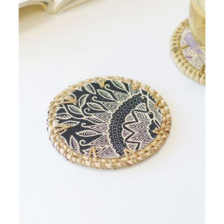 インドネシアの伝統技法・バティック(ろうけつ染め)の柄をモチーフにした雑材コースターです。