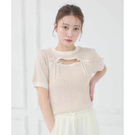 デコルテ部分のオープンデザインとリボンディテールが、女性らしい抜け感を演出してくれます。