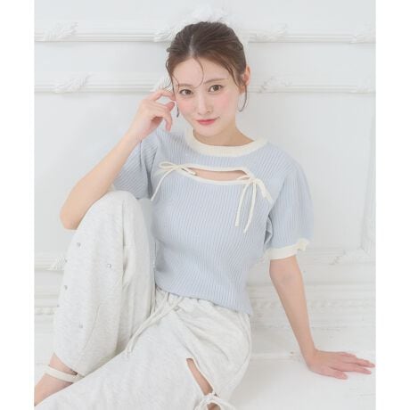 デコルテ部分のオープンデザインとリボンディテールが、女性らしい抜け感を演出してくれます。