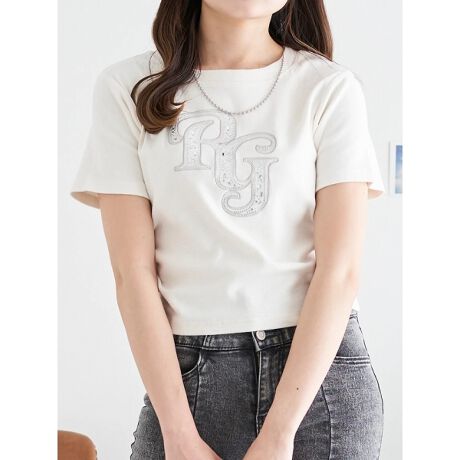 [型番:26560789000]ラインストーンで表現したロゴが目を引くショート丈Tシャツ。コンパクトなシルエットにサイドギャザーを加え、立体感のあるバランスに仕上げています。ハイウエストデニムを穿いてすっきりまとめたり、カーゴパンツを合わせてメリハリのある着こなしもおすすめ。程よく主張のあるデザインでコーデのアクセントになります。モデル(黒/オフホワイト着用)身長:165cmMサイズ着用
