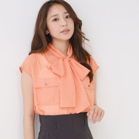 大胆なボウタイブラウス。甘くならないようにパッチポケット付きのCPOシャツをベースにシックかつ女性らしさも兼ね備えたデザインです。