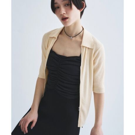 #ダブルジップニット #衿付きニット #ハーフスリーブ #レイヤードスタイル #モードカジュアル