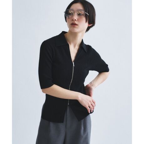 #ダブルジップニット #衿付きニット #ハーフスリーブ #レイヤードスタイル #モードカジュアル