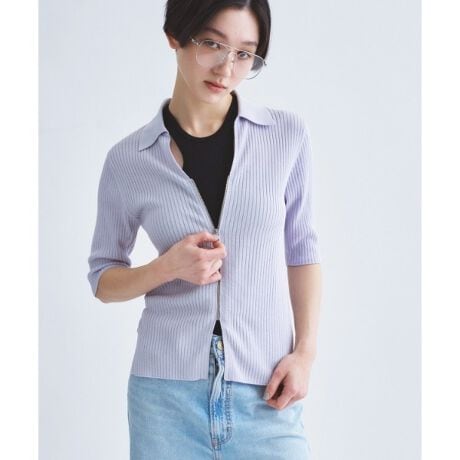 #ダブルジップニット #衿付きニット #ハーフスリーブ #レイヤードスタイル #モードカジュアル