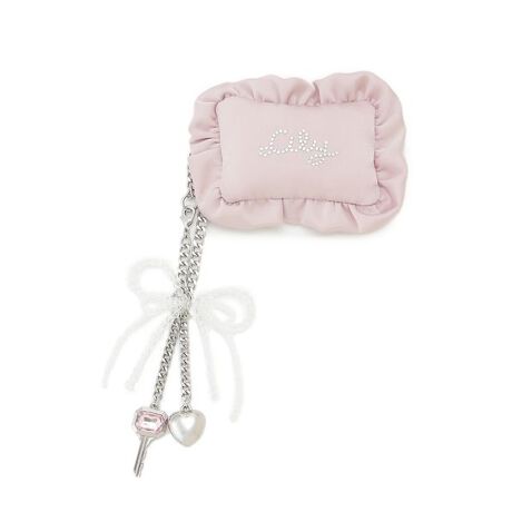 ふわふわとしたピローのような柔らかな素材に、「LILY」のストーンをあしらったキャッチーなチャーム。垂れ下がるカラーストーンのキーパーツや、立体的なハートのシルバーチャームが光を反射し、まるでジュエリーのような華やかさを放ちます。お手持ちのバッグに合わせて自在に取り付けられるよう、チェーンの輪で固定する仕様を採用。シンプルなバッグに一点投入するだけで、遊び心のあるモードなアクセントを添えてくれる、今季らしいデコラティブなアイテムです。