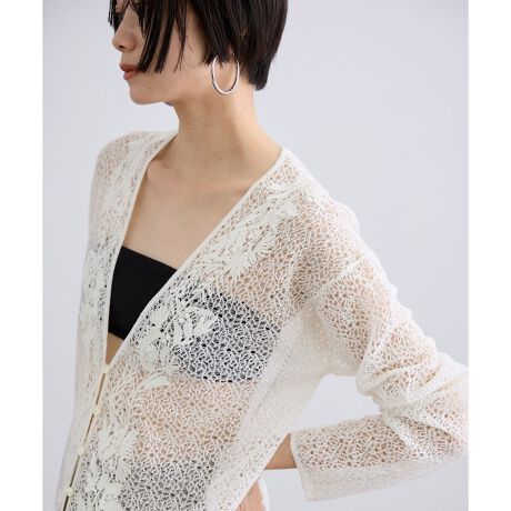 細番手のコットンとポリエステル糸を使用した繊細なレース編みニットです。