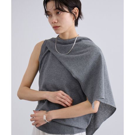右ショルダーから垂らしたり、肩にふんわり掛けて二の腕カバーしたり、