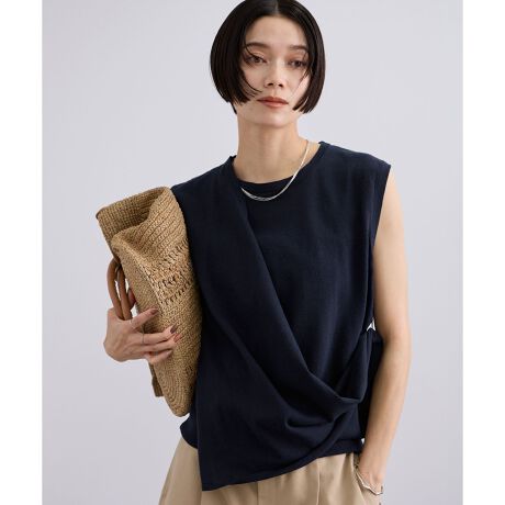 スカーフ付きでアレンジ自在に楽しめるノースリーブニットです。