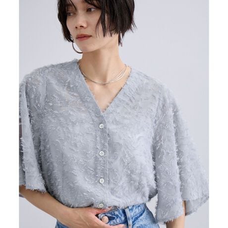 【WEB限定】フラワーカットジャガードブラウス