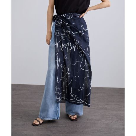 大判の正方形デザインで、腰に巻いてスカート風にしたり、三角折りで肩掛けしたりとアレンジ自在。