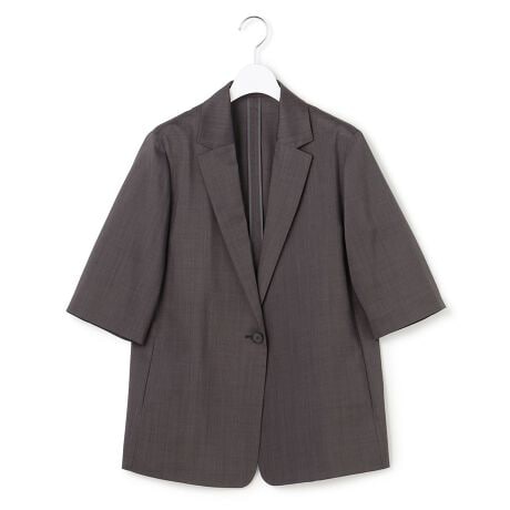 ■デザインすっきりとした美しいシルエットが魅力の半袖ジャケットです。シンプルになりがちな夏のスタイリングも、さっと羽織るだけで洗練されたきちんと感を演出。ラミー混素材ならではの艶やかな美しい光沢が、大人の女性らしさを引き立ててくれます。オフィスや外出先での冷房対策としても便利で、通勤などのビジネスシーンから、休日のお出かけまで、幅広く活躍すること間違いなしの一枚です。