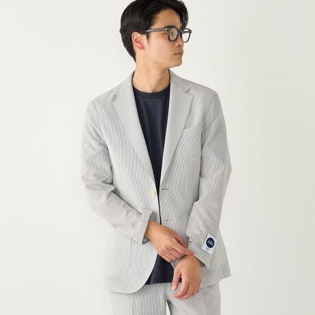 見た目にも涼やかな、シアサッカー特有の凹凸ある生地の表情もポイントです。