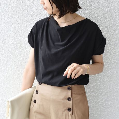 夏に嬉しい接触冷感の生地を使用したドレープTEE。