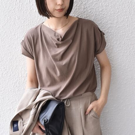 夏に嬉しい接触冷感の生地を使用したドレープTEE。