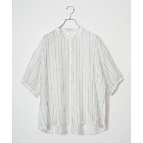 [型番:26012879]涼しげで清涼感のある楊柳生地で繊細に仕上げたブラウス。軽やかで肌ばなれのいい生地で汗ばむ季節も着こなしやすいアイテムです。バックにシャーリングをあしらい動くたび揺れるようなギャザーが印象的です。