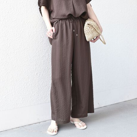 《予約》SHIPS Colors:〈手洗い可能〉ナイロンレーヨン ストライプ イージーパンツ◆