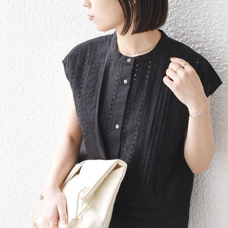 暑くなる時期に向けて活躍するフレンチスリーブのレースシャツ。