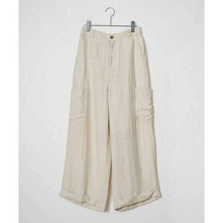 ミニポケットやサイドポケットのワークデザインが効いたワイドパンツ。