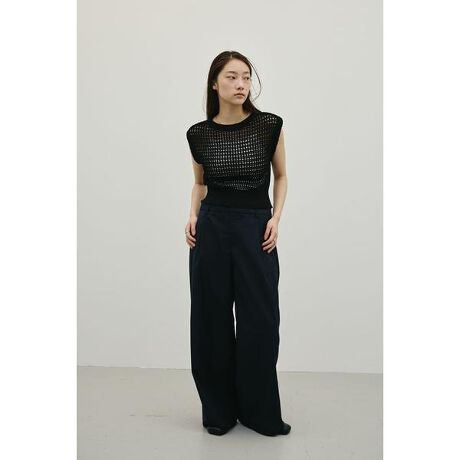 [型番:500JSA70-2101]モデル身長163cm(FREEサイズ着用)ざっくりとした透かし柄が印象的なクロシェニット。リネン混のリリーヤーンを使用した、軽やかで清涼感のある春夏にぴったりな一枚。Vネックとラウンドネックの前後2WAY仕様で、気分に合わせた着こなしが可能です。ショート丈デザインでどんなボトムスともバランスが取りやすいニットトップスです。ストレッチあり、透け感あり。【お手入れ方法】手洗い可