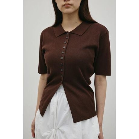 [型番:500JSA70-3141]モデル身長163cm(FREEサイズ着用)前後2WAYで着用可能なニットポロ。なめらかでさらりとした糸を使用。ビスコース混の微光沢が上品な印象に見せてくれます。総針に編み立てにしているのでボディーラインもひびきにくい一枚です。ストレッチあり、透け感なし。 【お手入れ方法】手洗い可