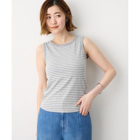 [型番:521161]一枚で決まるカップ付きタンクトップ取り外し可能なカップ付きでインナーいらずで着られる、デイリーに便利なタンクトップ。さりげない表面感のある素材で、前開きのシャツやカーディガンを羽織ったスタイルもサマになります。ジャケットのインナーとしても使いやすく、幅広いシーンで活躍します。