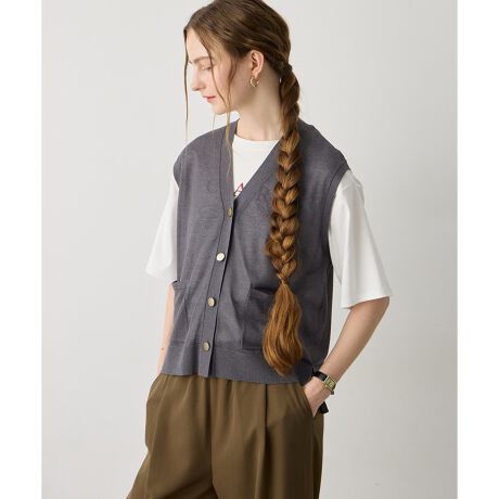 [型番:292159]重ねて楽しむシアーベストダブルポケットがアクセントになったVネックベスト。程よい透け感で軽やかな印象に仕上がり、シーズンレスで活躍。Tシャツやシャツに重ねやすいサイズ感で、コーデに取り入れやすい一着です。シンプルなトップスに重ねるだけで、いつものスタイリングに変化をプラスしてくれます。