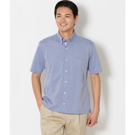 毛羽立ちの少ない上質なコットン糸とポリエステル糸を組み合わせた、エイトロック鹿の子素材を採用。汗ばむ時期に嬉しい吸水速乾機能を備えており、さらりとした肌触りで暑い季節も快適に過ごせます。程よい光沢感があり、上品な印象を演出します。