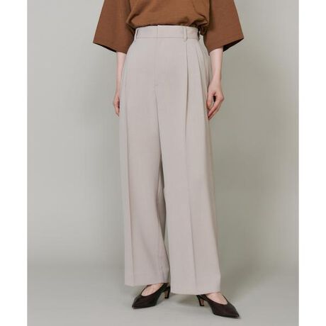 ■デザインセンタープレスを入れたタックワイドパンツ。ウエストはバックゴム&両サイドの釦ディティールでサイズ調節が可能です。広すぎないワイドシルエットと梳毛見えの素材感でマニッシュでキレイ見えの叶うワイドパンツです。■デザイン梳毛見えする表情とさらっとしたドライタッチが特徴のポリエステルツイル素材。ポリエステルなのでシワになりずらく、適度なハリ感で肌離れの良い素材です。・水洗い可・ウエスト後ゴム■サンプル撮影商品画像の商品はサンプルです。実際の商品とはサイズや色味、素材、デザイン等の仕様が若干変更になる場合がございます。■カラーについては、可能な限り実際の商品に近いカラーで撮影をおこなっておりますが、照明の関係により実際の製品とは色味が違って見える場合があります。またパソコン・スマートフォンなどの環境により、若干製品と画像のカラーが異なる場合もございます。現物と画像のカラー差異については返品理由となりませんので、予めご了承ください。■サイズ表記はあくまで目安となります。
