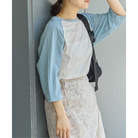 今シーズンムードの高いコントラスト配色のラグランスリーブデザイン、七分袖で肌離れの良いワイドなシルエットでリラクシーな着心地。