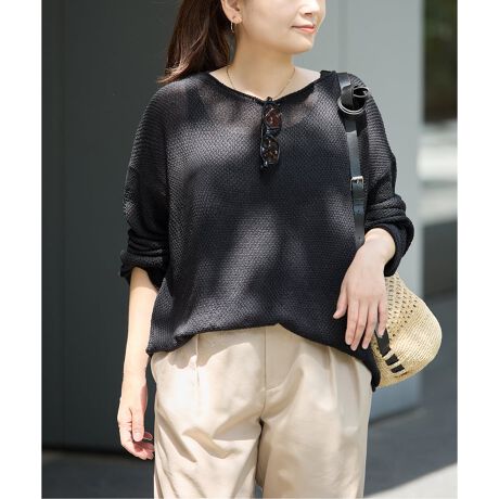 リラックス感あるシルエット、カノコ編みで透けすぎない素材が、着やすさのポイントです。