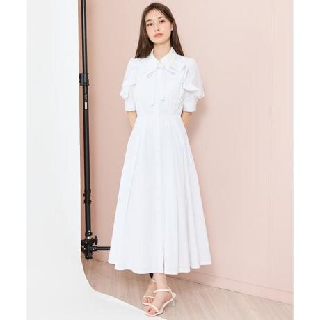華やかなディテールが目を惹くラッフルパフスリーブシャツワンピース【Design】・ラッフルデザインが華やかな印象を与えるシャツワンピース。・程よくボリュームのあるパフスリーブが女性らしいシルエットを演出。・シャツデザインできちんと感もあり、一枚で着るだけでコーディネートが完成するのも魅力♪・取り外し可能なリボンタイ付きで、気分に合わせてアレンジが楽しめます◎・デイリーからお出かけスタイルまで幅広く活躍する一着です!・フロントボタン仕様。【Fabric】・さらっとした軽やかな素材を使用し、快適な着心地に。・ホワイトストライプ、イエロー、ブルーストライプ、インディゴの4色展開となります。【Care】ドライクリーニング