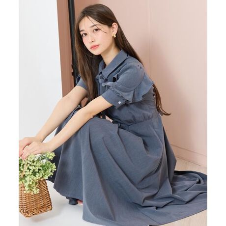 ラッフルパフスリーブシャツワンピース
