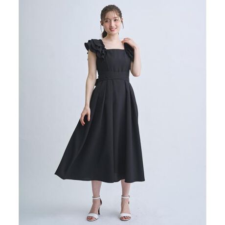 【後ろ姿まで可愛い、大人レディな華やぎワンピース】【Point】・肩にあしらったフリルデザインが、顔まわりを華やかに見せてくれるワンピース。・フロントクロスがくびれラインを強調し、女性の体のラインを美しく魅せます。・バックスタイルはゴム仕様で、程よくフィットする快適な着心地に仕上げました。後ろで結ぶリボンがアクセントになり、後ろ姿まで女性らしく決まります。・ふんわりと広がるフレアスカートが、歩くたびに優雅なシルエットを演出。デイリーからお出かけシーンまで、一枚で華やかなスタイリングが完成する主役ワンピースですケア方法:ドライクリーニング透け感:なし裏地:あり伸縮性:なし(ウエスト部分:後ろゴムあり)光沢感:なし生地の厚さ:中肉