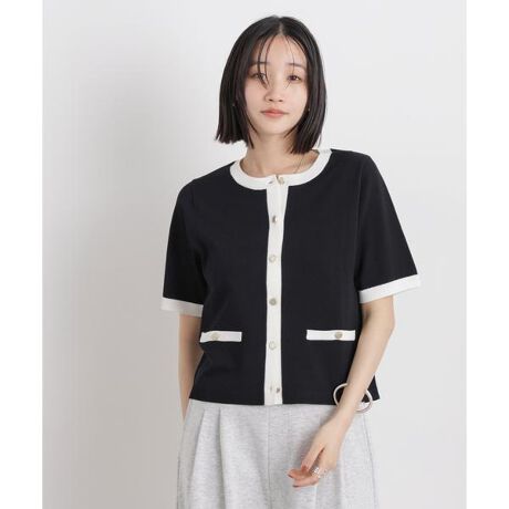 マルイウェブチャネル   /   トップス   /   ニット・セーター   /   バイカラー金ボタンクルーネック半袖ニットカーディガン