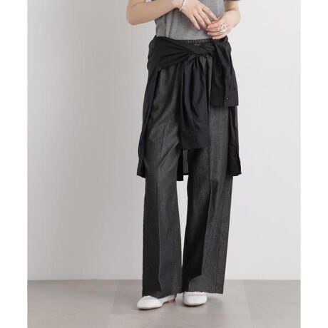 着心地の良い抜け感のあるデニム素材のパンツ。ややワイドなシルエットで、センタープレスも入っているのでカジュアル過ぎずON/OFFで合わせやすいデザイン◎リラックス感のあるウエストゴムで快適な着心地を楽しめるのも魅力です。