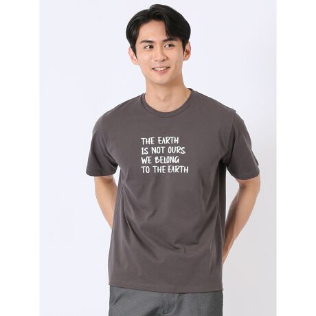 シンプルで大人っぽい雰囲気に仕上げた、クルーネックの半袖Tシャツです。メッセージロゴは「地球は人間のもの(所有物)ではなく、人間が地球の一部である」という意味です。綺麗目なインナーとしてシャツやジャケットインに最適な一枚です。
