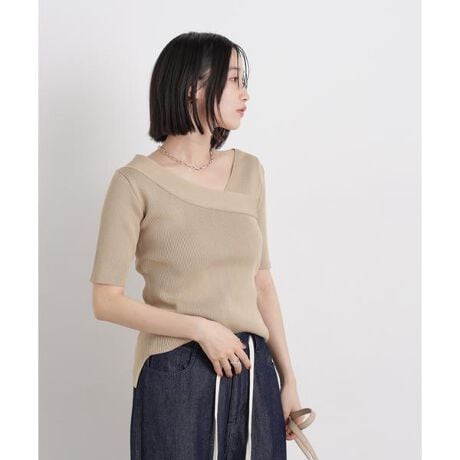 前後2WAYで着用できる、着回し力の高いきれいめリブニットトップス。アシンメトリーなネックデザインと、上品なボートネックの2つの表情を楽しめて、その日の気分やシーンに合わせた着こなしが叶います。さりげないモード感と女性らしさを兼ね備えた、大人のデイリートップスです。