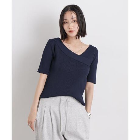 前後2WAYで着用できる、着回し力の高いきれいめリブニットトップス。アシンメトリーなネックデザインと、上品なボートネックの2つの表情を楽しめて、その日の気分やシーンに合わせた着こなしが叶います。さりげないモード感と女性らしさを兼ね備えた、大人のデイリートップスです。