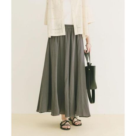 コットン楊柳素材のナチュラルな風合いが魅力のフレアスカートは、ほどよい広がりで女性らしいシルエットを演出。動くたびに軽やかに揺れ、涼しげな印象に仕上がります。Tシャツと合わせてもカジュアルになりすぎず、上品さをキープできるのがポイント。デイリーからお出かけまで幅広く活躍する、大人にうれしい一枚です。