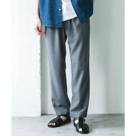 ・フロントにはワンタックを施して腰回りに程よいゆとりを持たせつつ、裾に向かって細くなるテーパードシルエットに仕上げることで、サンダルやスニーカーを合わせても足元がもたつかず、スマートな印象を演出します。