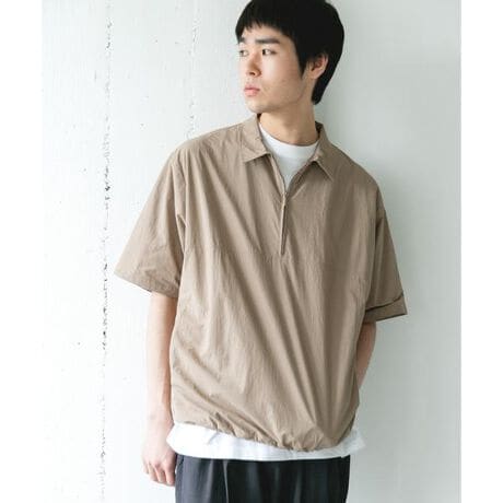 ・ゆとりのあるシルエットと着脱しやすいハーフジップデザイン。裾のドローコードを絞ればシルエットに変化をつけられ、ボトムスとのボリュームに合わせてバランスを調整いただけます。