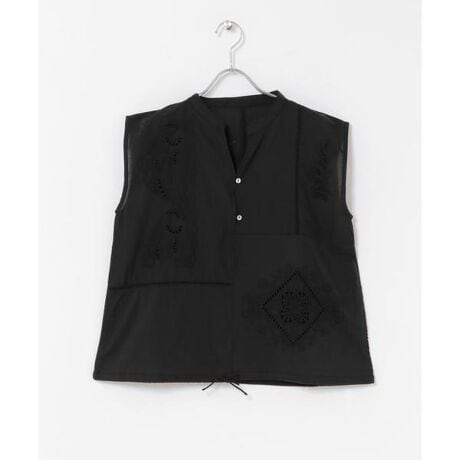 繊細な刺繍を施した生地をパッチワークで繋げたブラウスは、大人ナチュラルな雰囲気を演出します。