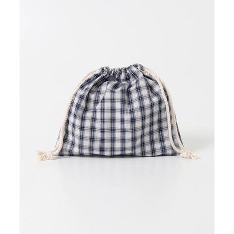 CINQ ネイビーチェック 巾着S