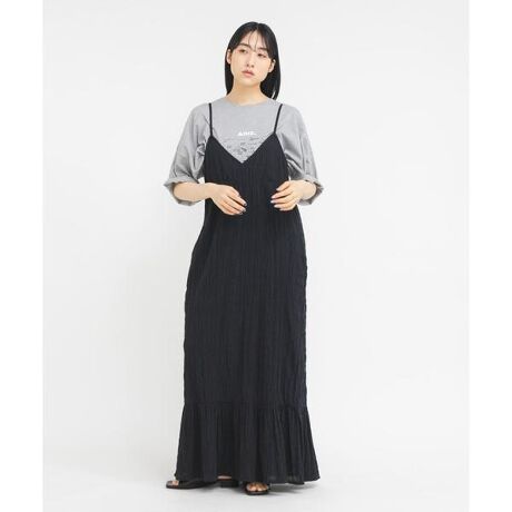 KBFオリジナルの千鳥チェック柄を採用したキャミワンピースが登場。全体的にマジョリカ加工を施すことで、細身えと伸縮性を叶えました。胸元のビスチェデザインや、身幅が調整可能な紐付きもポイント。合わせるインナー次第で雰囲気を変えられます。