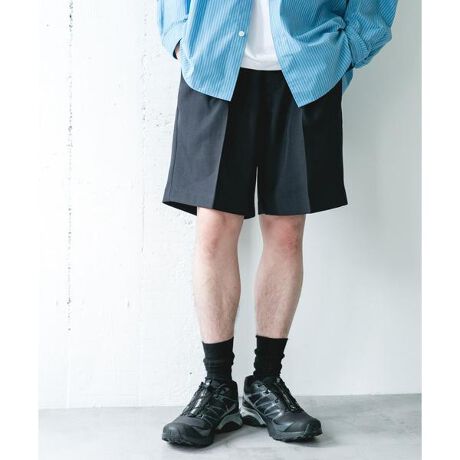 ・カジュアルになりがちなショーツながら、適度な光沢としっかりとした厚みがあるため、どこか落ち着いたきれいめな表情に。型崩れしにくいハリのある生地が、肌との間に風の通り道を作り、見た目以上の清涼感を実現しました。