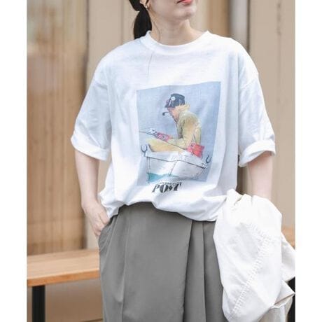 グラフィックプリントがシンプルなスタイリングを彩ってくれ、一枚では勿論シャツやカーディガンの中に仕込んでアクセントにしてもおすすめです。