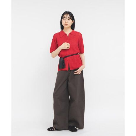 細かなレース編みを採用した大人っぽさのあるニットシャツ。程よくすっきりしつつも、長めに設定された丈は綺麗なシルエットを叶えます。裾釦をいくつか開け、スリットを作ると脚長効果が発揮されるのでおすすめです。
