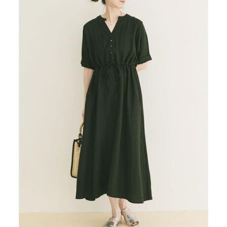 ウエストマークデザインがメリハリのあるシルエットを演出する半袖ワンピース。自然にスタイルアップが叶い、女性らしさとこなれ感を両立した大人カジュアルな一枚です。シンプルながらも一枚で着映えし、デイリーからお出かけまで幅広く活躍。スニーカーでラフに、サンダルやバレエシューズで上品にも着こなせる、着回し力の高いアイテムです。