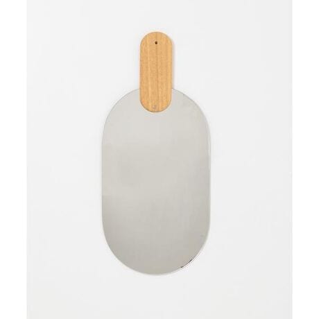 まるでラケットやうちわのようなユニークな形状の小型壁掛けミラー。