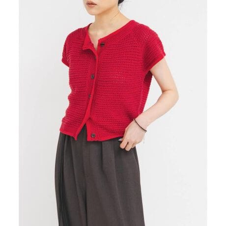 凹凸が高級感のあるリップル編みで仕上げたニットベスト。二の腕を程よくカバーしてくれるフレンチスリーブや、柔らかな着心地が叶う素材もポイントです。シンプルに見えながらも大人っぽく着こなせ、どんなボトムとも相性が良く1枚持っておくと着回せるアイテムです。